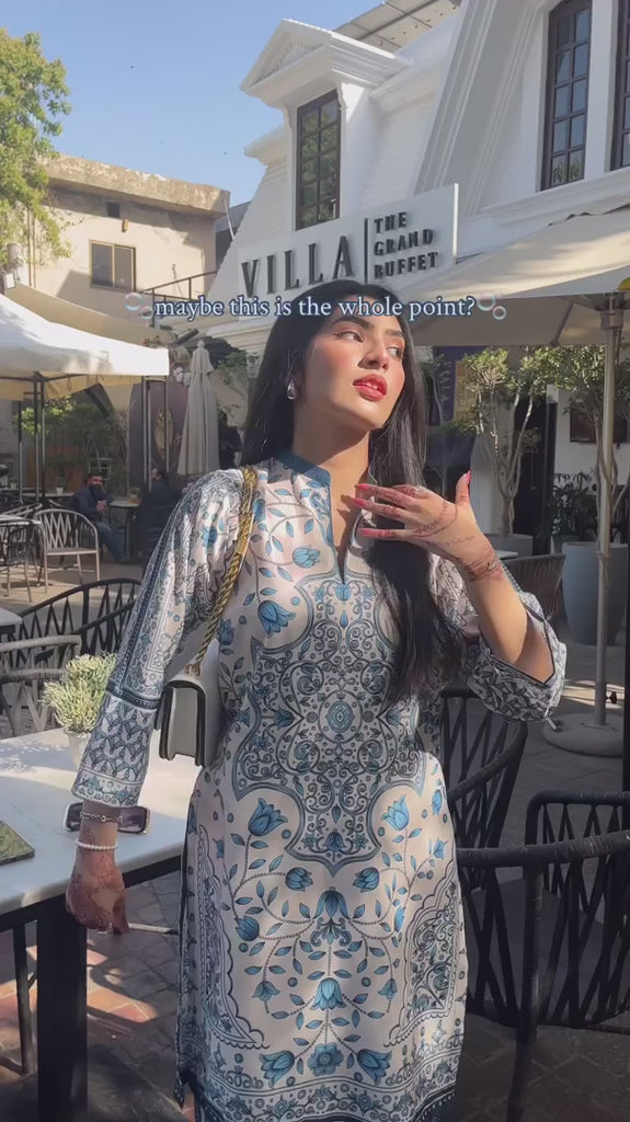 SERENE BLOOM CO-ORD SET: Step into effortless elegance with this Viscose Rayon co-ord set, crafted for the modern woman who loves style with comfort. Featuring a soothing blue floral print on a pristine white base, this set brings a refreshing, nature-inspired vibe to your wardrobe. ๐ธ๐