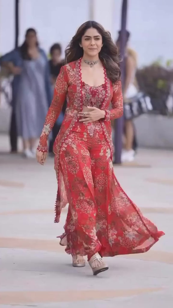 *Koti Fabric* :Heavy Foux Georgette With Beautiful Floral Digital Print With Embroidery 5 mm Sequence Work With Full Sleeves